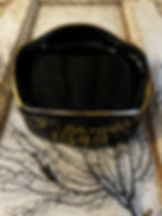Classic 8oz Flask, Custom Wrapped in Repurposed Leather, Black & Orange Crest