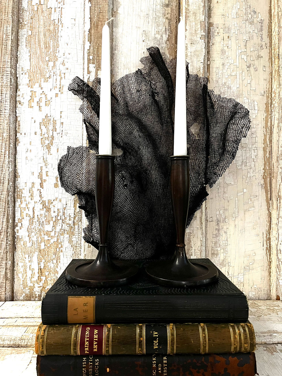 Vintage Solid Walnut Candle Holder with Honeycomb Candle