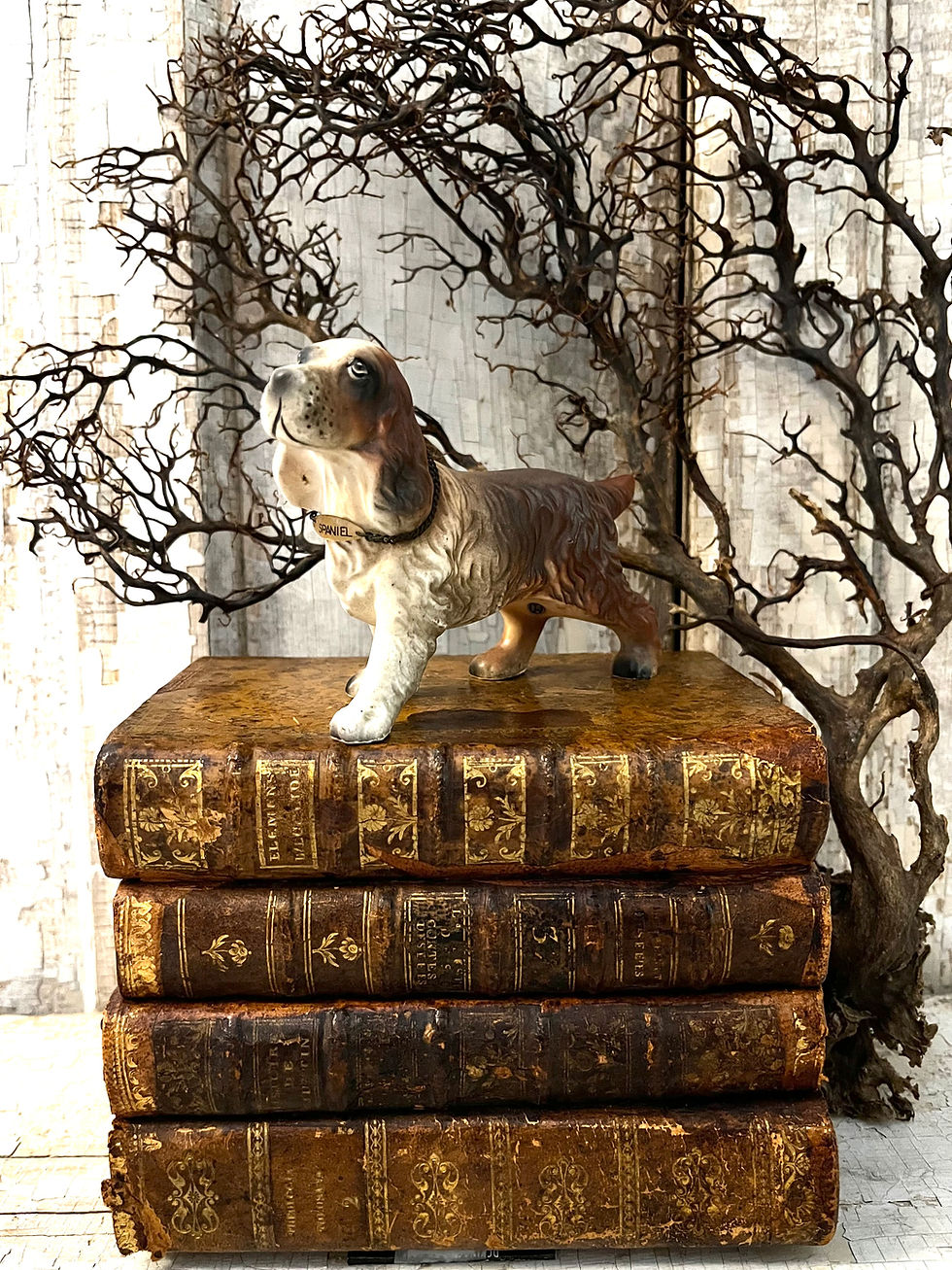 Vintage Painted Porcelain Spaniel Figurine