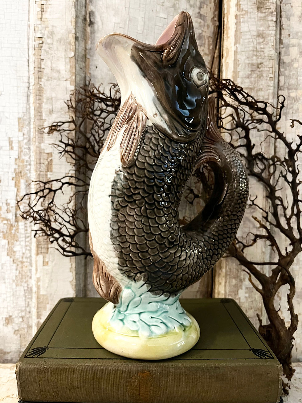 Vintage Hand Painted Majolica Fish Form Ewer