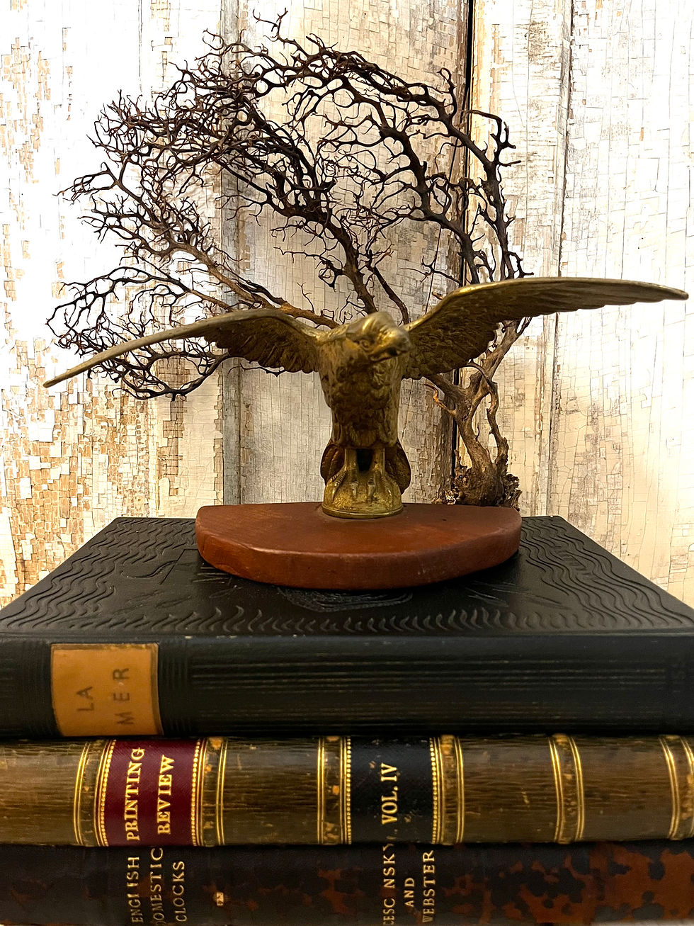 Vintage Metal Eagle on Wooden Base